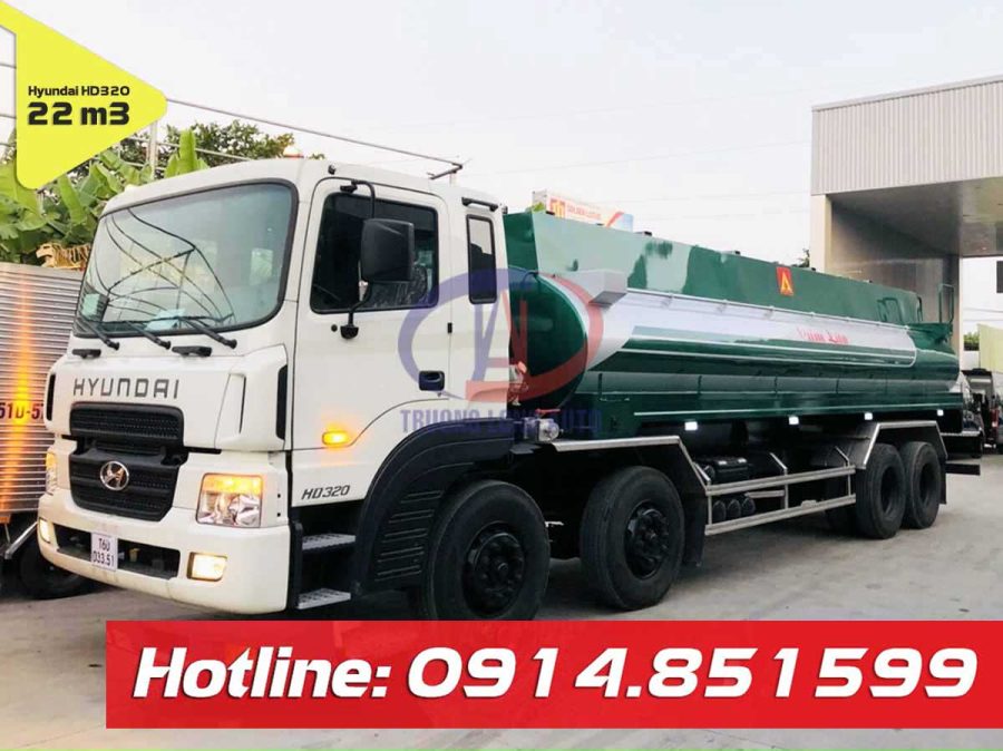Xe bồn chở xăng dầu Hyundai HD320 22m3 ( khối) được thiết kế trên nền xe Hyundai HD320 Euro 5 nhập khẩu nguyên chiếc từ Hàn Quốc. Bồn đóng mới bằng Thép CT3 hoặc Thép Nhật (SS400), trang bị bơm cánh gạt hoặc bơm bánh răng lưu lượng lên đến 40m3/h. Xe bồn 22 khối HD320 do Công ty TNHH Trường Long Auto sản xuất theo tiêu chuẩn cao nhất của ngành xăng dầu và được phê duyệt mẫu bởi Cục đăng kiểm Việt Nam.