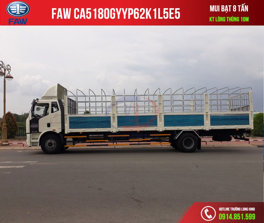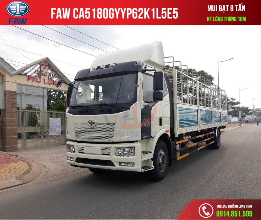 Xe Tải FAW CA5180GYYP62K1L5E5 thùng mui bạt 8 tấn Cabin sát xi được nhập khẩu nguyên chiếc từ Trung Quốc.đóng thùng mui bạt tiêu chuân theo nhu cầu khách hàng. thuận tiện cho việc sử dụng và lưu thông hàng hóa.