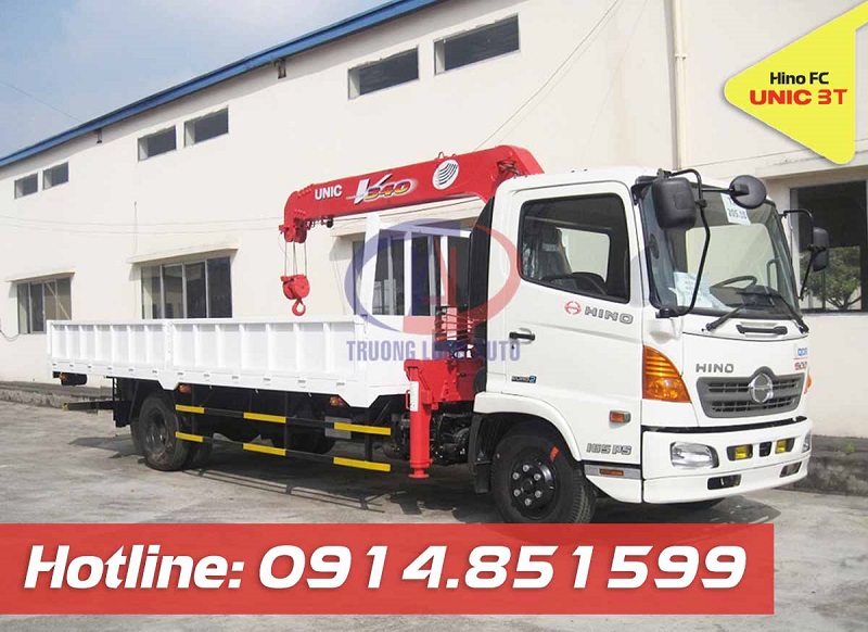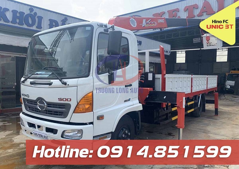 Xe tải Hino FC gắn cẩu 3 tấn Unic là loại xe cẩu tự hành có tải trọng trung bình tương thích với nhiều mục đích sử dụng khách nhau như di chuyển các loại hàng hóa, cấu kiện có khối lượng vừa phải hoặc hỗ trợ cho các hoạt động xây lắp, bảo trì điện, chiếu sáng công cộng và các công trình dân dụng. Xe tải Hino FC gắn cẩu Nhật Bản Unic 3 tấn được Trường Long Auto thiết kế, lắp ráp hoàn thiện tuân thủ các quy định của cục đăng kiểm và các yêu cầu an toàn kỹ thuật của ngành.